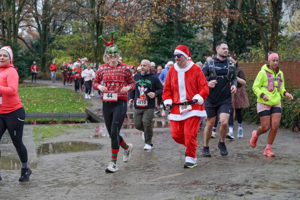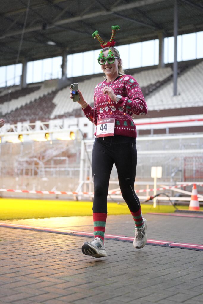 Die Streckenführung ist sehr eng, sollte man es hier wirklich auf einen Tempolauf anlegen, so rate ich unbedingt zu einer frühen Startzeit und sehr weit vorne. Bei Anmeldung kann jeder Teilnehmer seine Startzeit selbst auswählen, was die persönliche Planung stark vereinfacht. Alle 30 Minuten wird so ein neuer Startblock auf die Straße geschickt. Obwohl die Startwellen entzerrt werden, sind doch sehr viele weihnachtlich verkleidete Läuferinnen und Läufer auf der Strecke, weshalb es phasenweise wenig Platz auf der Strecke gibt. Das Feeling beim Lauf ist sehr ausgelassen und entspannt, eine schöne Zeit mit Freunden scheint hier im Vordergrund zu stehen.